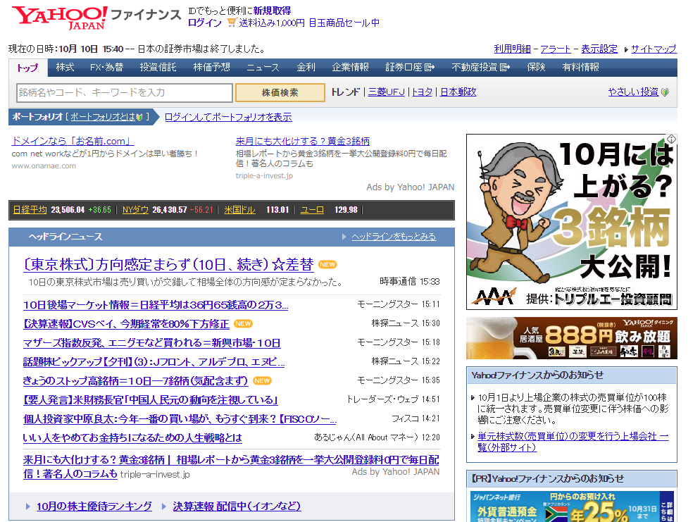 以下、一番分かりやすいYAHOO!ファイナンスを例にして説明していきます。