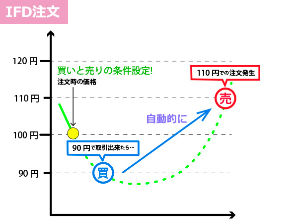 FXでは、2つまたは3つの注文を同時に出すことができる特殊な注文として自動売買が用意されています。自動売買では、「指値注文」と「逆指値注文」を同時に行うこと(OCO注文)や、「もし◯◯の取引が成立したら、すぐに◯◯の注文をする」といったような条件を設定して、自動的に売買を行うこと(IFD注文)も可能です。