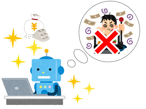 FXの自動売買は正直なところ、大きな利益を得たい方にはおすすめできません。自動売買を利用すると、多くの方が「損失を最小限におさえて、着実に利益を得る」ことを意識するからです。そういう意識になると、大きな値動きに乗じて一獲千金を狙うような投機的取引を行うことがなくなります。これは自動売買の大きなメリットではありますが、スリルのある取引を行いたい方には向いていません。
