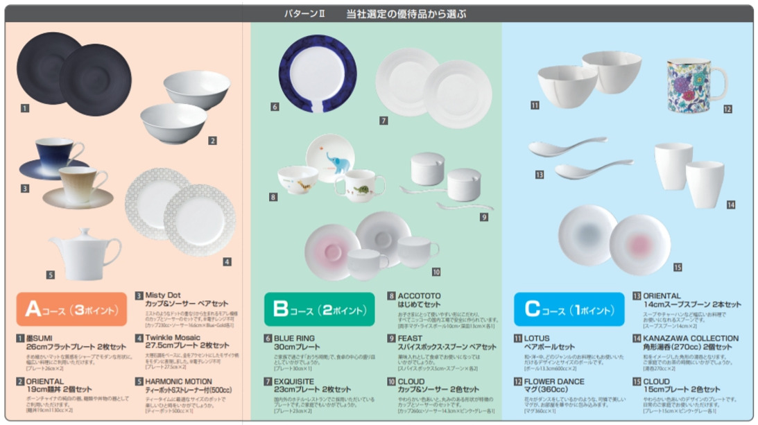 パターンⅡの優待品は、三谷産業が選定したプレートやカップなどのなかから選べます。