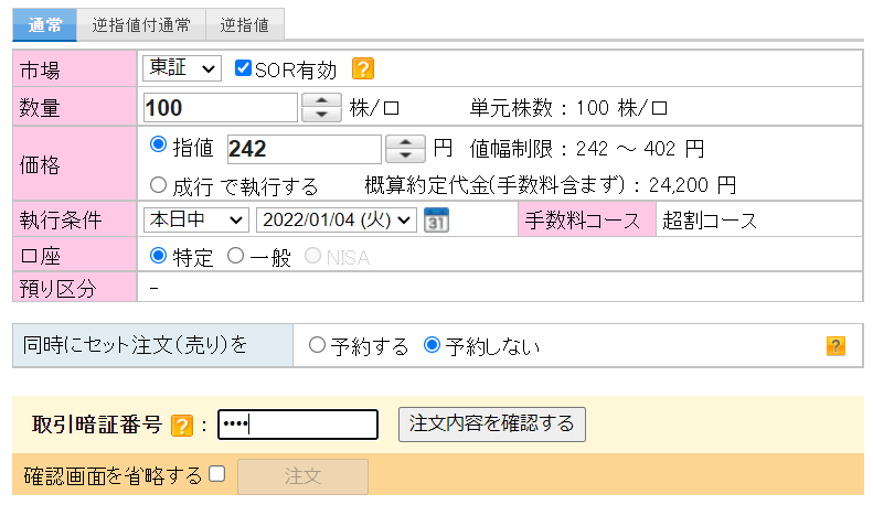 手数料を除いた約定代金(株購入に必要なお金)の概算が表示されるので、確認しておきましょう。